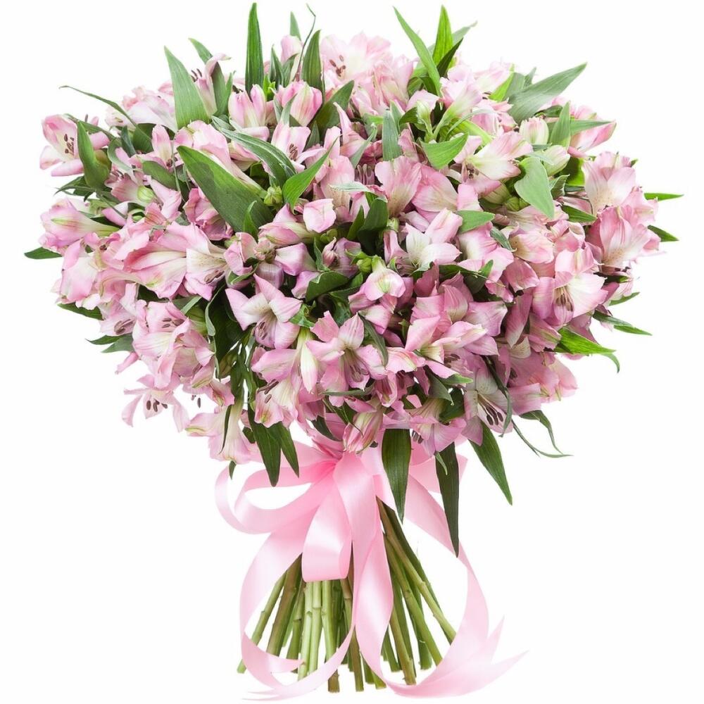Альстромерия розовая – 51 шт.Атласная лента – 1 шт.