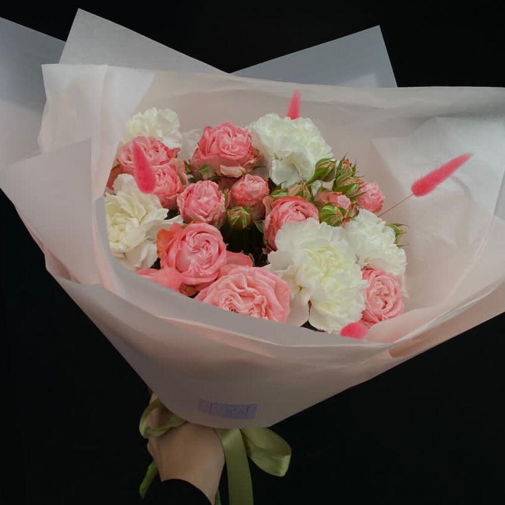 11 кустовых пионовидных роз в дизайнерской упаковке