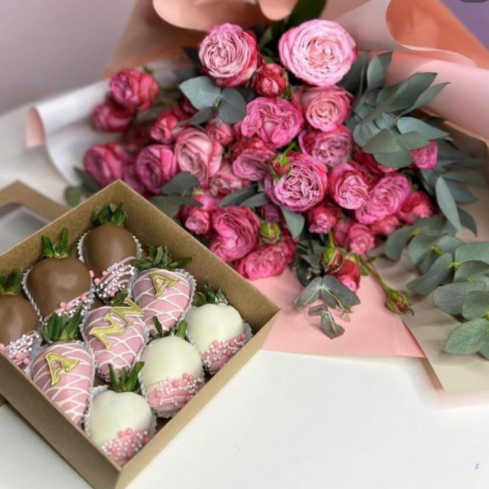 Набор клубника в шоколаде и букет