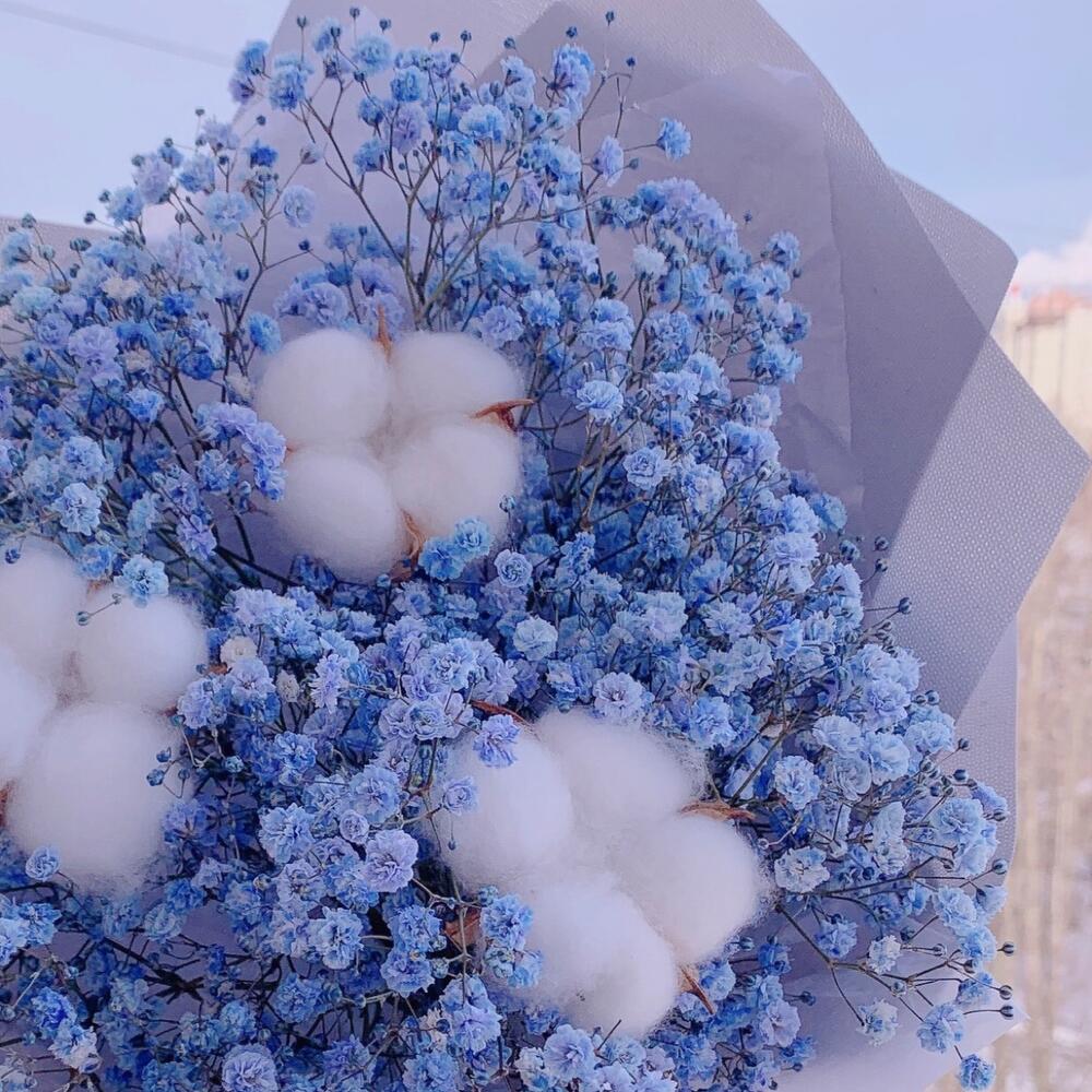 Букет голубой гипсофилы с хлопком☁️