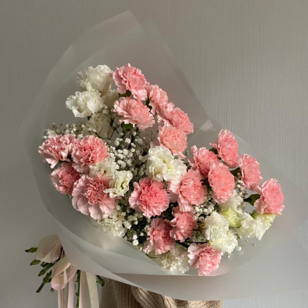 Гвоздика – 19 шт.эустома белая – 5 шт.