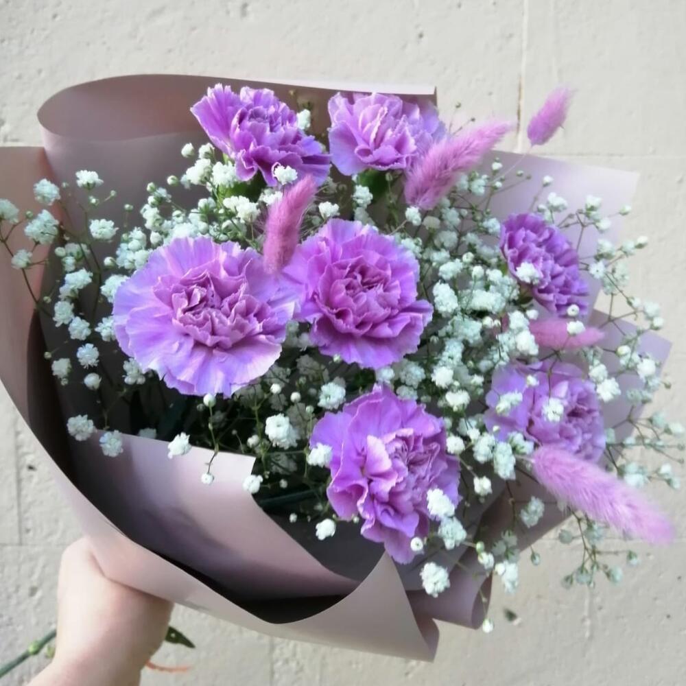Букет Лунный из гвоздики с гипсофилой