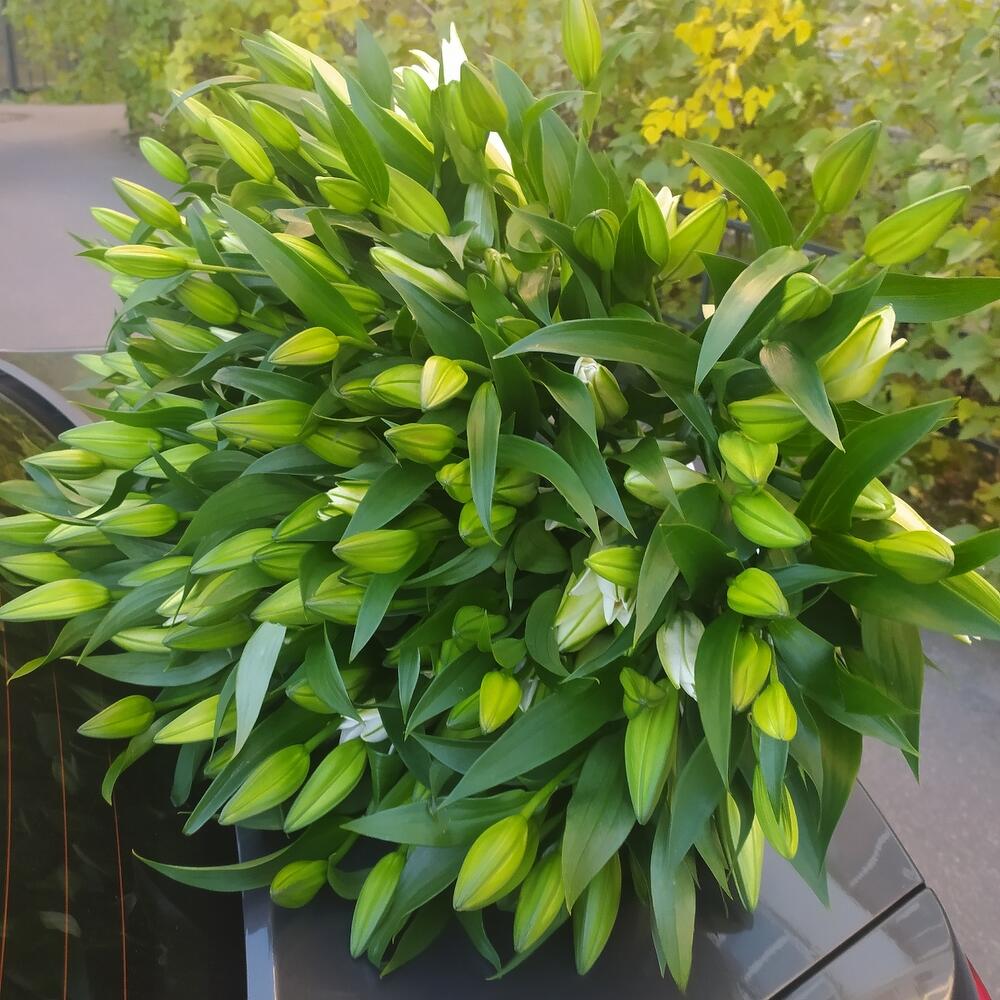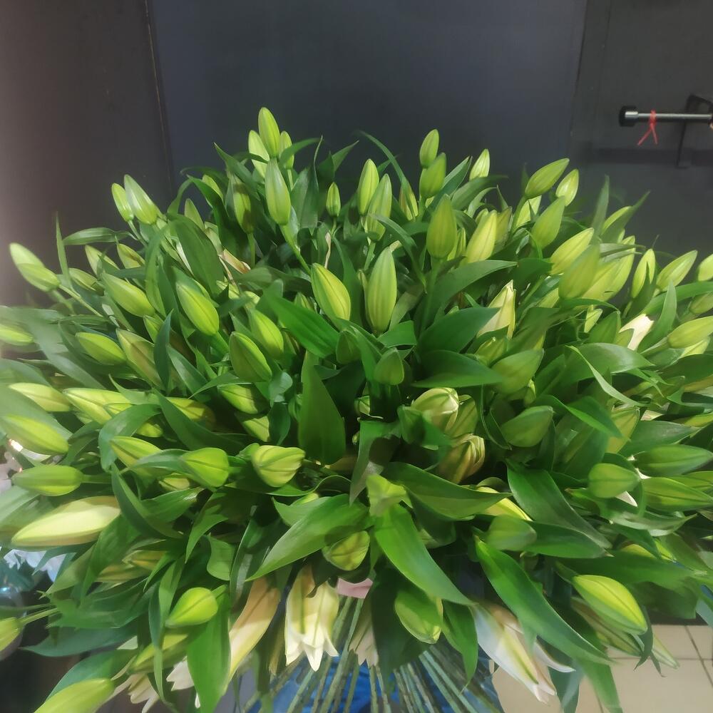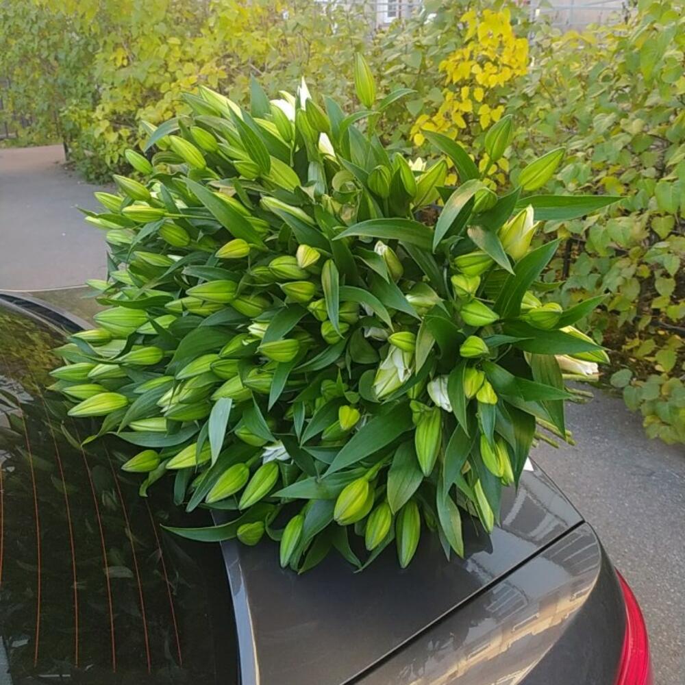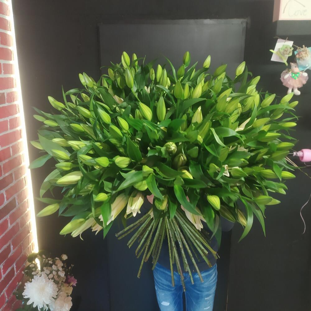 Лилия белая – 51 шт.Лента атласная – 1 шт.