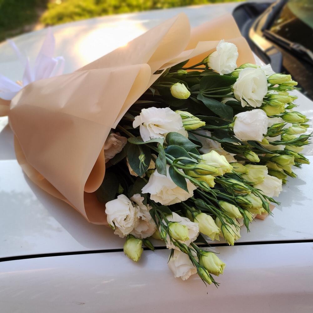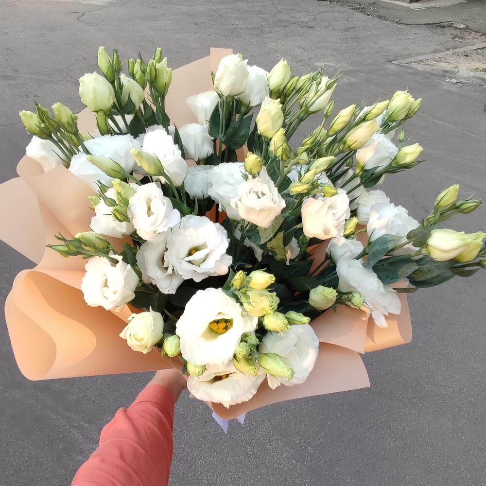 эустома белая – 9 шт. калька флористическая – 1 шт.