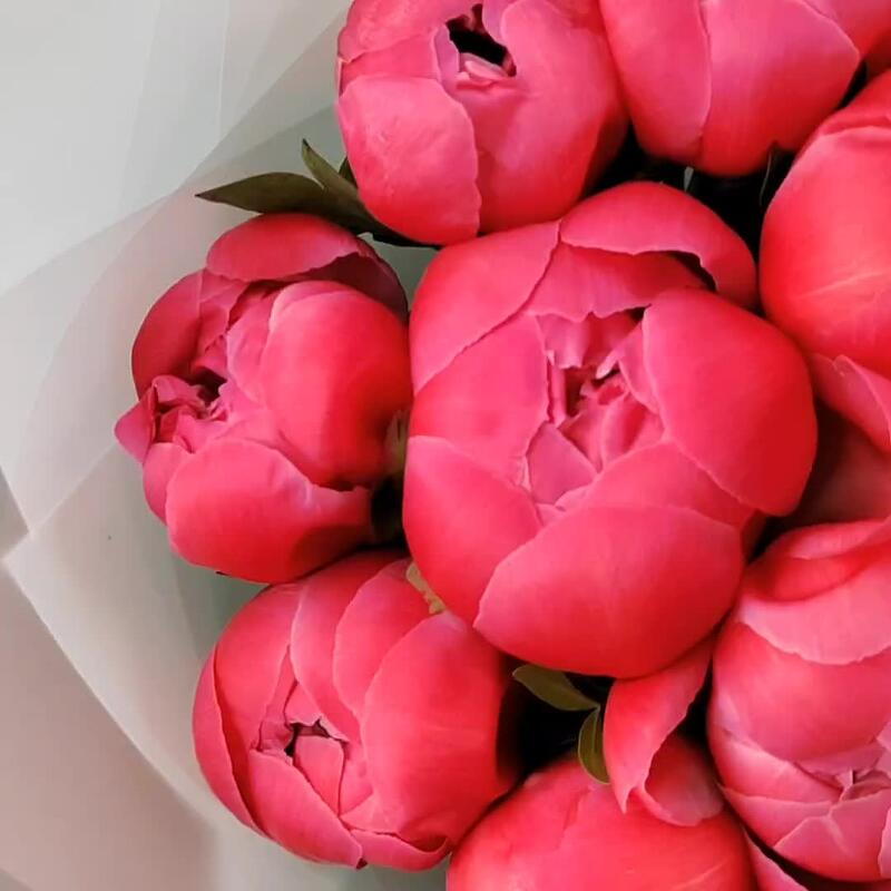15 коралловых пионов. Букет 15 KimFlo