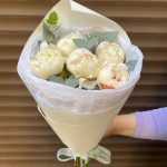 Белые пионы с эвкалиптом 5штук(сб032)