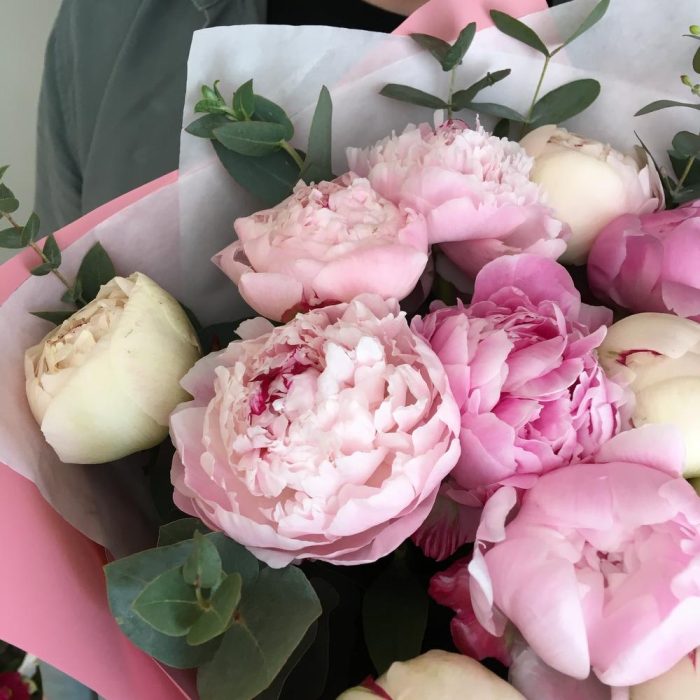 Сливочный – Букет с пионами