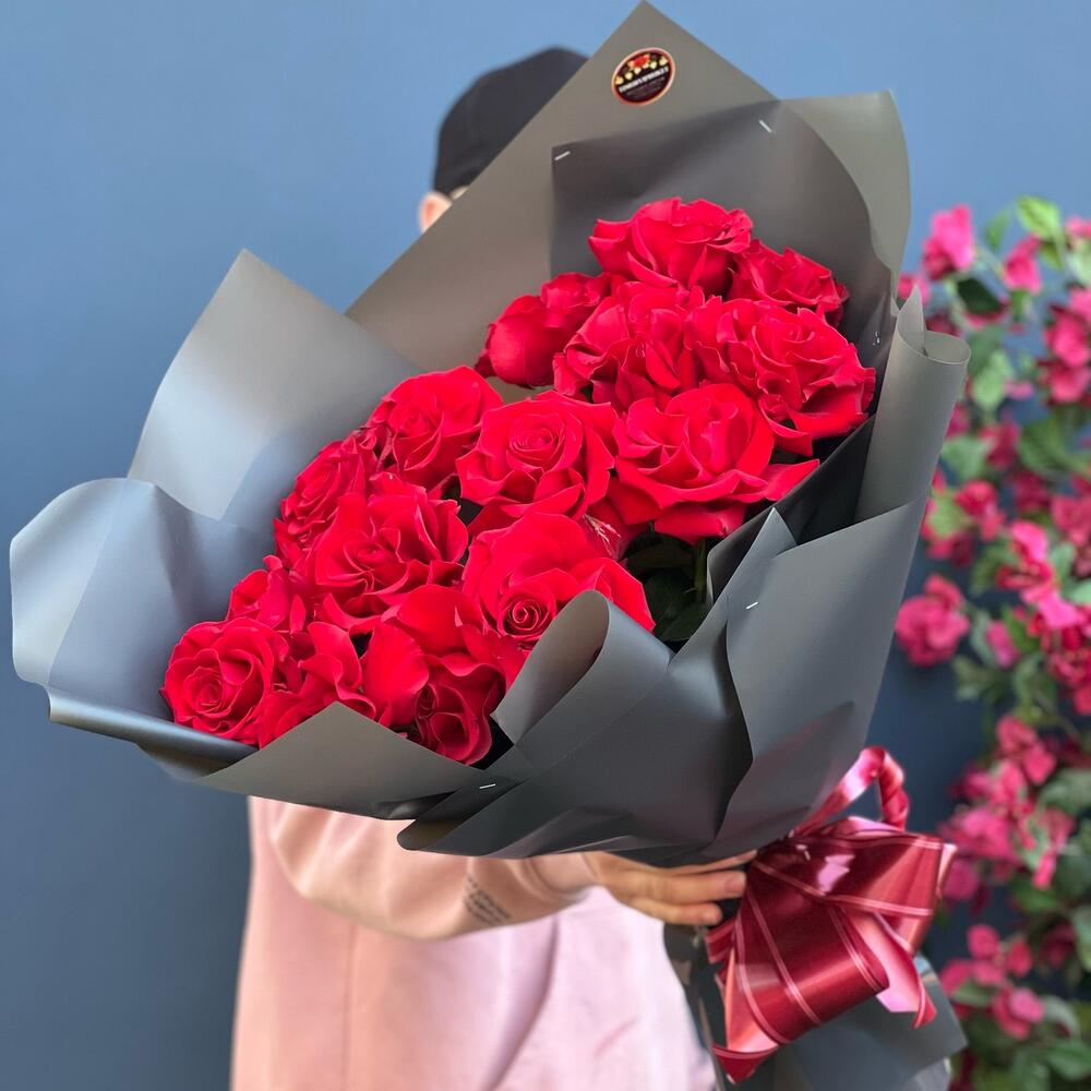 Роскошные красные розы сорта Freedom в стильном черном оформлении как отличный подарок для ваших близких ❤️