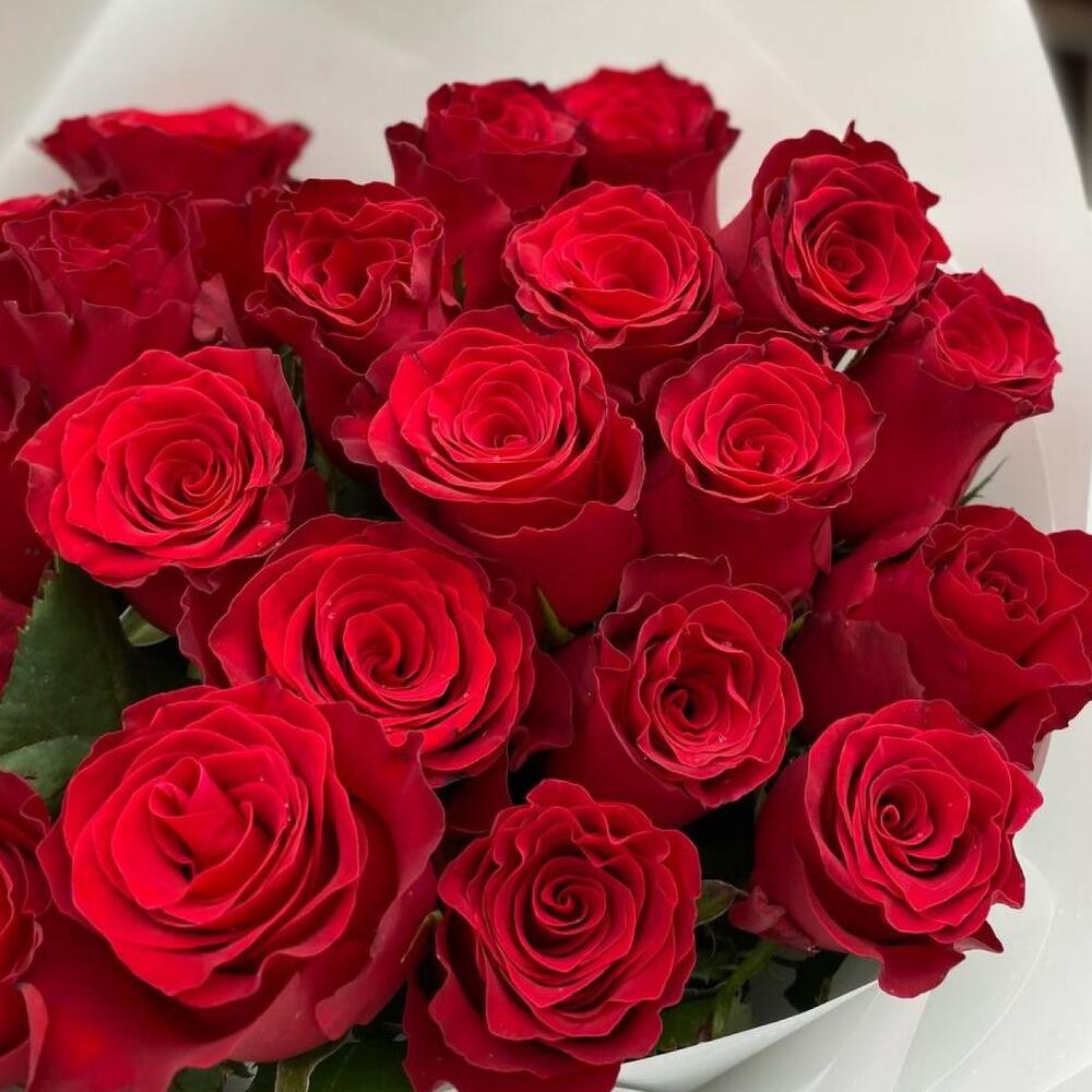 Роза красная – 21 шт. Открыточка с вашими пожеланиями – 1 шт. Упаковка дизайнерская – 1 шт. инструкция по уходу за цветами – 1 шт.