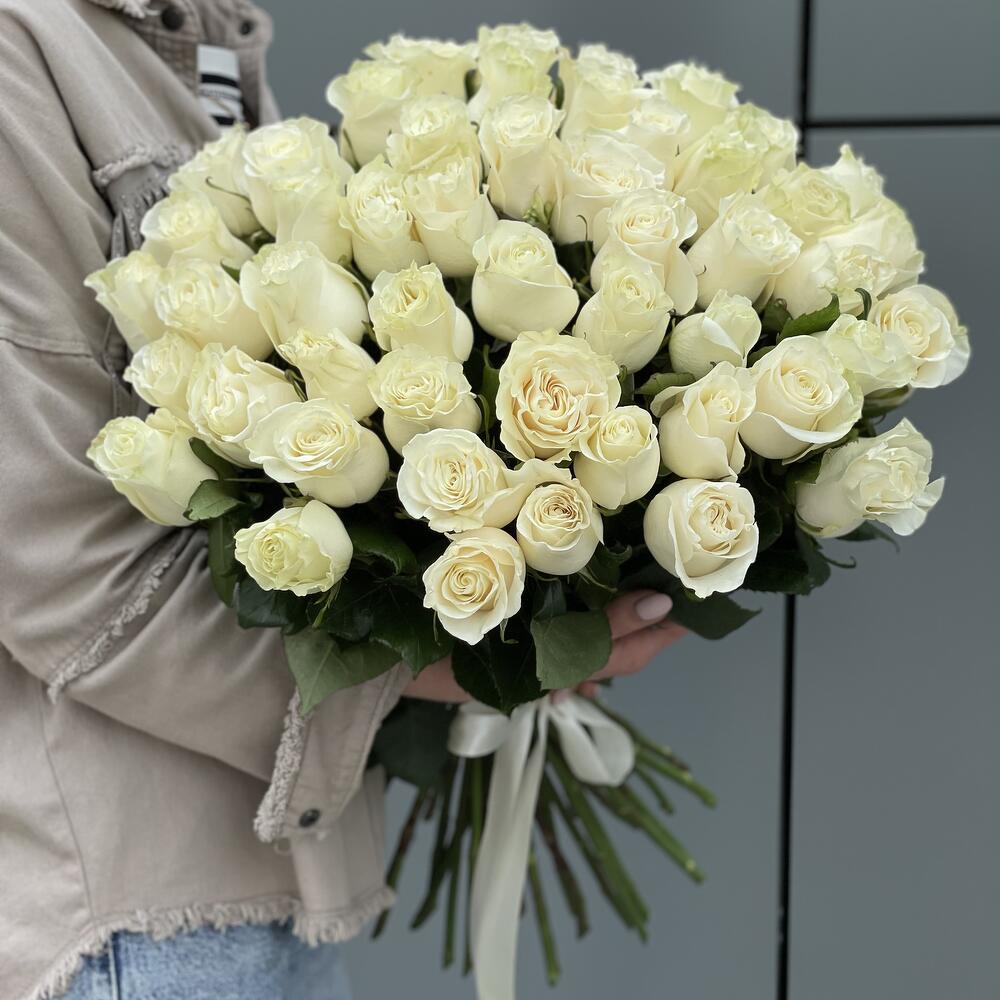 Метки: 14 февраля, 51 роза, Белые розы, от 5000 руб, Роза 50 см
