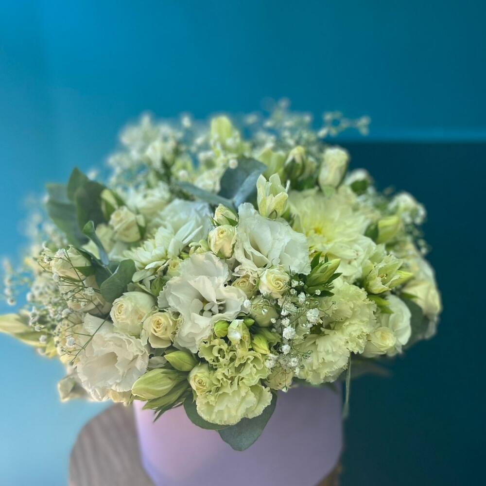 Альстромерии, Гвоздики, Кустовые розы, Лизиантусы, Розы, Хризантемы