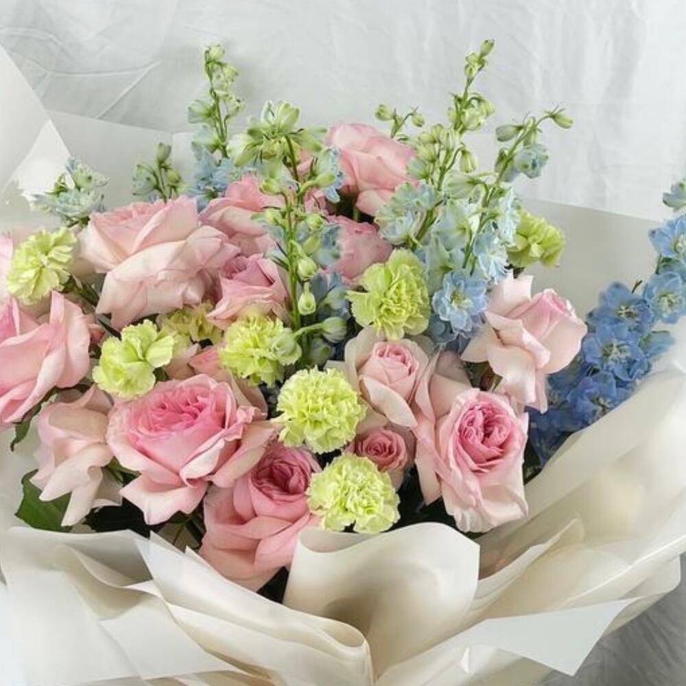 Гвоздики, Кустовые розы, Пионовидные розы, Розы