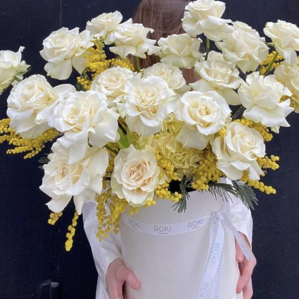 Альстромерии, Кустовые розы, Лизиантусы, Пионовидные розы, Розы, Ромашки