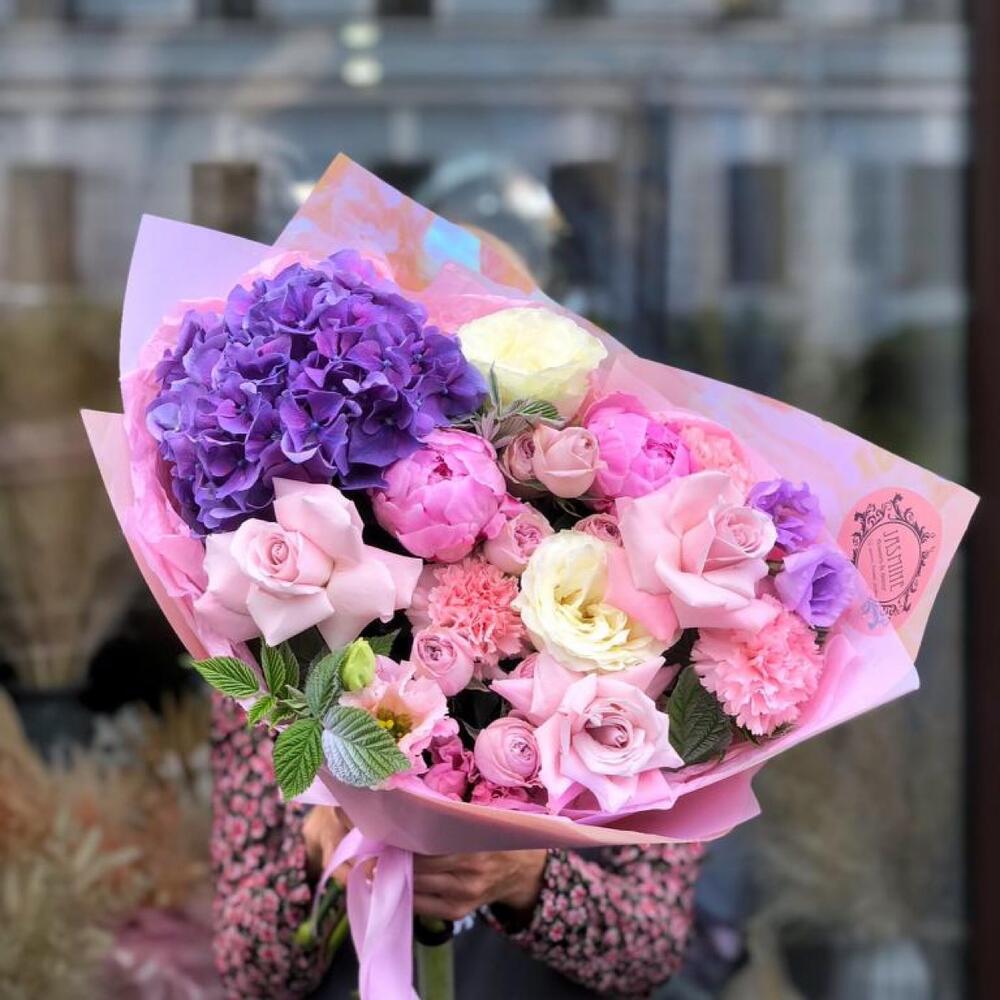 Категорий: Гвоздики, Гортензии, Кустовые розы, Лизиантусы, Пионы, Розы