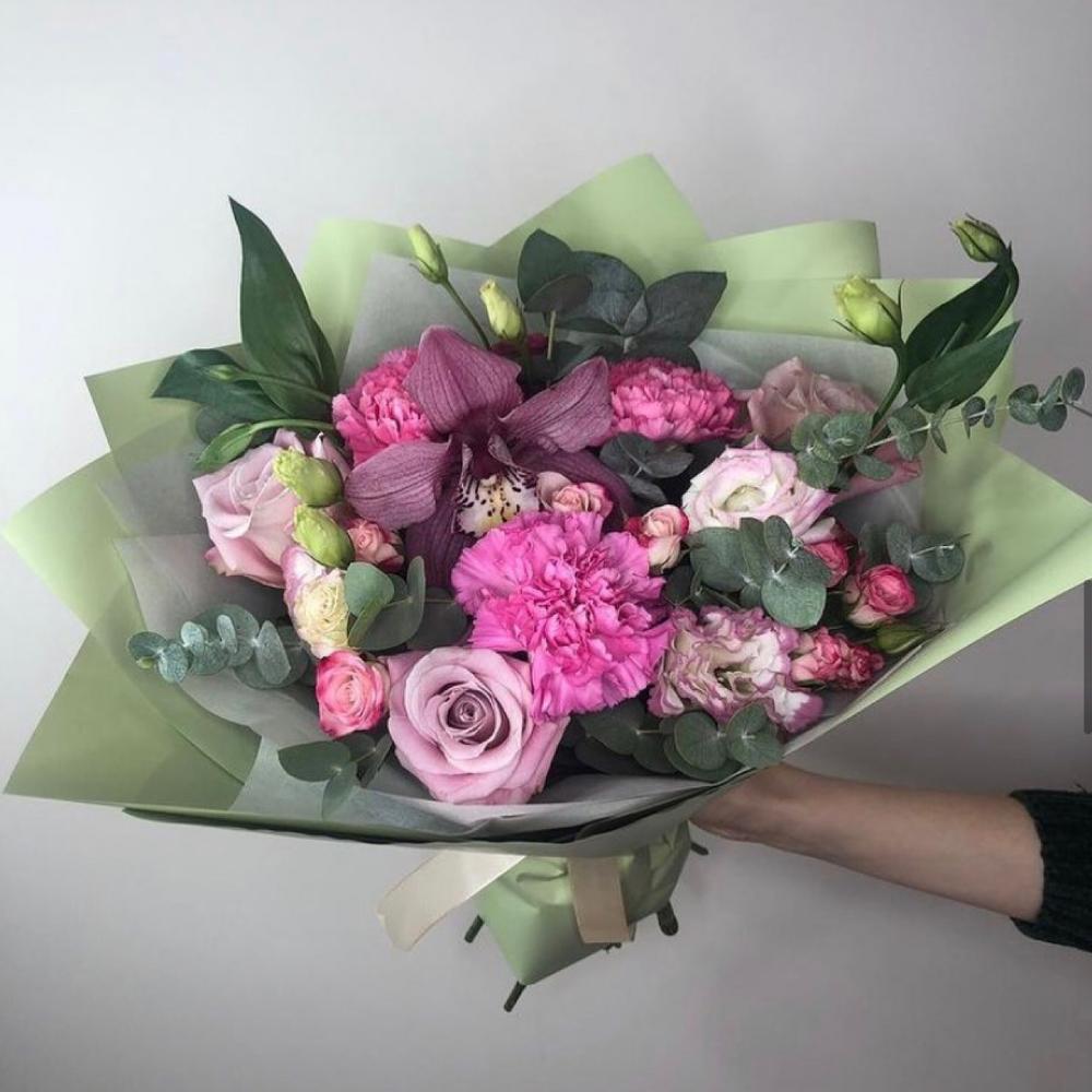 Гвоздики, Кустовые розы, Лизиантусы, Пионовидные розы, Розы