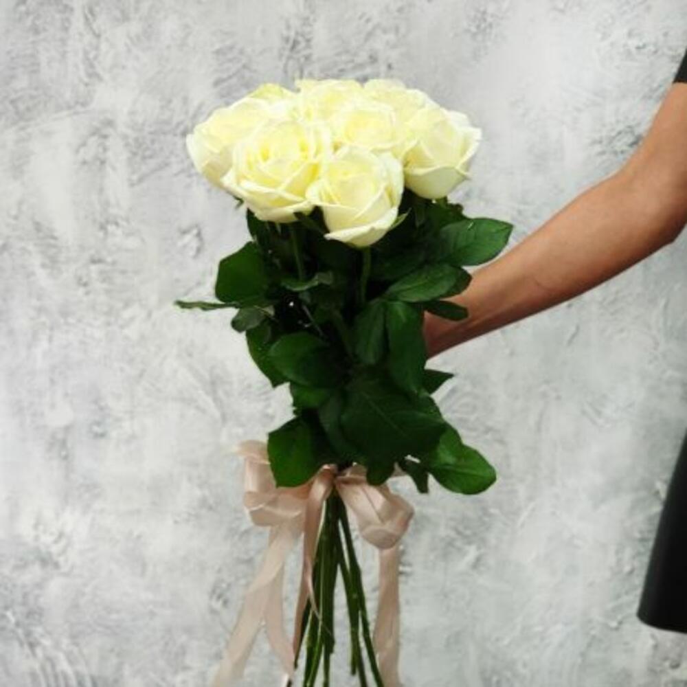 Метки: 9 роз, Белые розы, от 1000 до 2000 руб, Роза 60 см