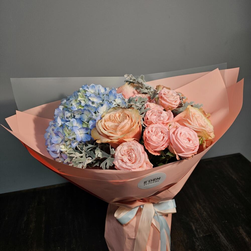 Альстромерии, Кустовые розы, Лизиантусы, Пионовидные розы, Розы, Ромашки