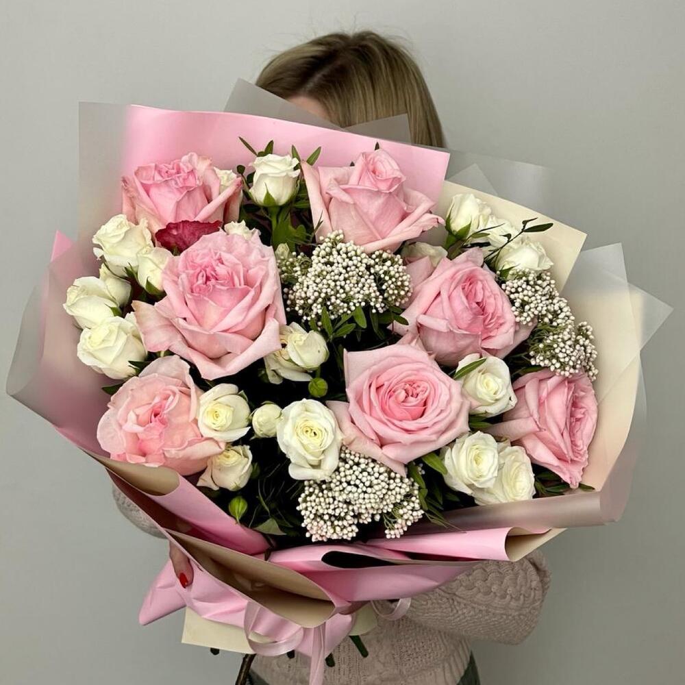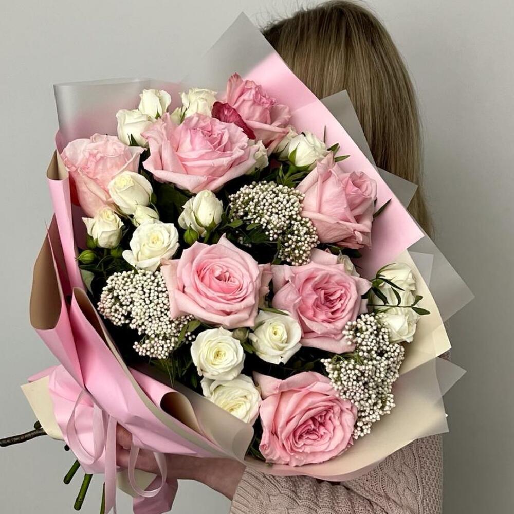 Гвоздики, Кустовые розы, Пионовидные розы, Розы