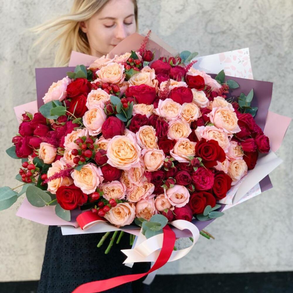 WOW букет с пион. кустовыми розами