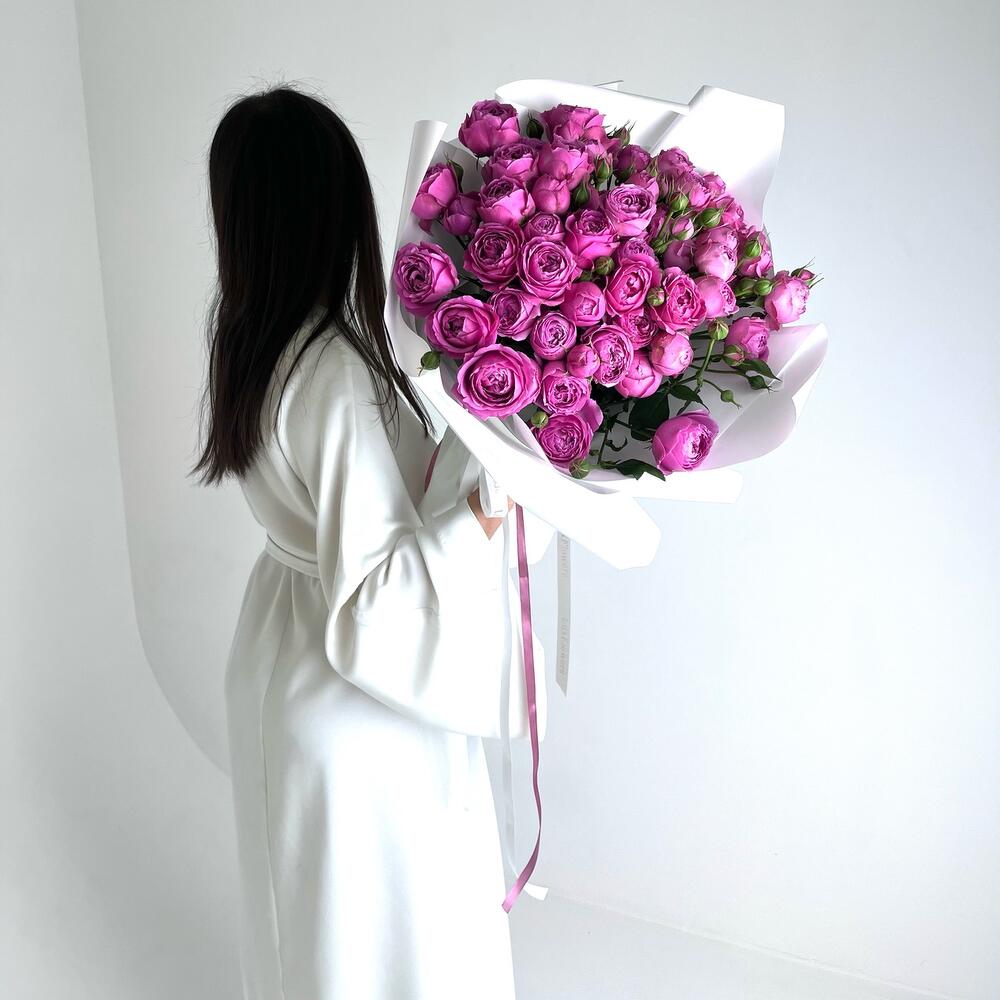 Misty Bubbles пионовидная роза – 15 шт.Упаковка дизайнерская – 1 шт.Лента дизайнерская – 2 шт.